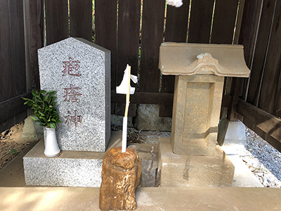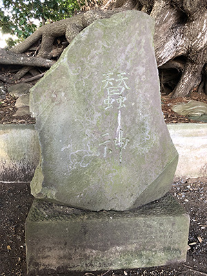 鳥居の側の大きな木の根元あたりに「蚕神社」石祠があった。