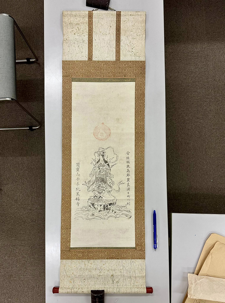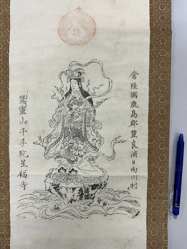 ●星福寺(神栖市)の金色姫掛軸と、蚕影山の小さな御守り