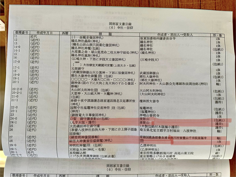 昨年、五日市郷土館で目録を見せていただいた際に許可もらって写真撮らせてもらい、その中にピンクのマーカー付けたものがありました。急ぎませんが出てきたら見せてくださいとお願いしていたところ、今日電話いただいたので、早速拝見してきました。ひとつずつ封筒に分類されて保存された中から、探して来てくださったものです。お手数おかけしてしまいました。
