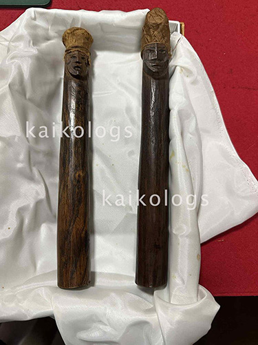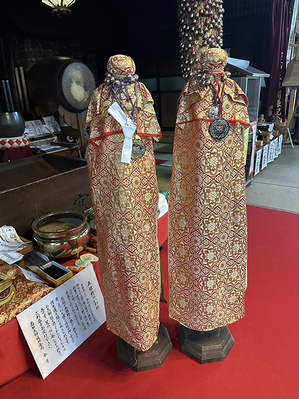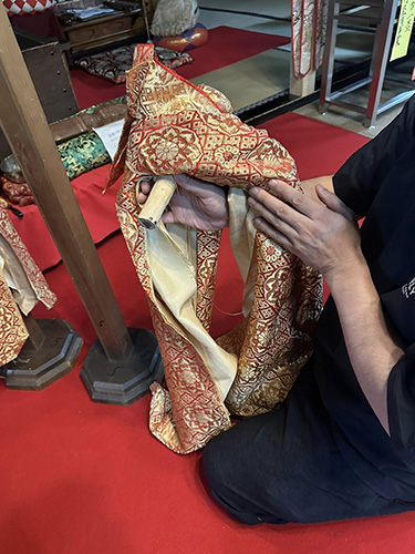 遠野のように着せ重ねるのではなく、新たな布に着替えをするそうで、金蘭の布の下には、絹の白布が2、3枚着せられ、白布には朱印が押されていた。