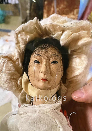オシラサマの御神体は基本桑の木で顔を彫ったり、描いたりしたものが多いそうですが、なかには浄瑠璃で使われているような人形が御神体になっている場合もあり、各々違いがあるそうで、久渡寺住職さんもオセンダクの時にみせていただくしか機会がないと言っておられました。