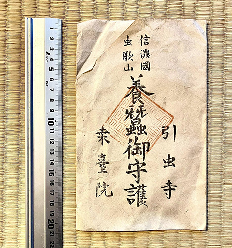 長野県 長野市 松代町の豊栄地区に所在する「虫歌観音」の名で呼ばれる、虫歌山 桑台院さんの古い御札を入手。