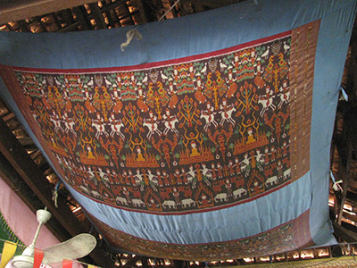プノンペンから南へ車で1時間半くらい行ったタケオ州にある寺院で奉納されたピダンを観たことがありますが、どれほどの手間がかかってるのやらと途方にくれました。