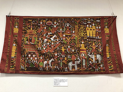 「カンボジアは1970年代、東西冷戦の影響で内戦となり、伝統絹織物の伝承も危ぶまれましたが、織りを愛する人々と、それを応援する外国からの支援により、不死鳥のようによみがえりました。人々が想いをこめ、神話、精神世界などを描いた伝統絹絵絣(えがすり)ピダンを中心に、難民キャンプで織られたもの、伝統柄を復元したもの、新たな創作柄、さらに、織糸を部分的に浮かせて文様を織り、刺繍のように見える浮き織り・紋織(もんおり)などを展示します。」