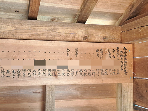 中に新社建立時の奉納者一覧の板が掲げられてました(地図では蚕神社だけど、板には蚕神神社となってますね)。